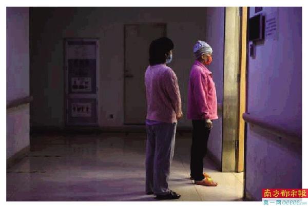 卢春叶和母亲黎秋昆在诊室外等待入院前的检查。