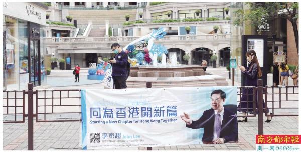 香港街头的海报印有李家超形象和“同为香港开新篇”字样(5月8日摄)。