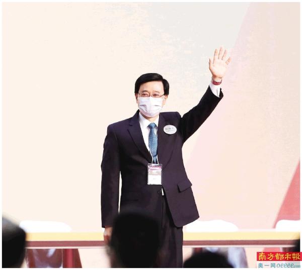 5月8日,在香港特别行政区第六任行政长官选举中,李家超高票当选第六任行政长官人选。在香港会议展览中心,李家超挥手致意。 新华社发