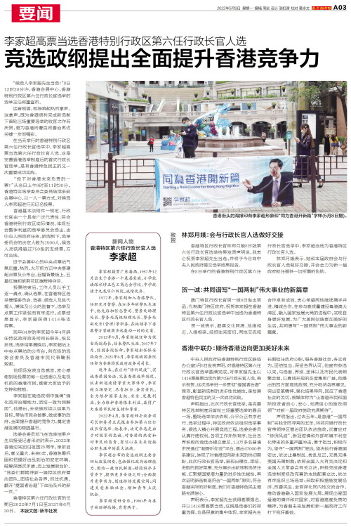 “候选人李家超先生当选!”8日12时20分许,香港会展中心,香港特别行政区第六任行政长官选举的选举主任郑重宣布。 话音刚落,现场响起热烈掌声。这掌声,既为香港顺利完成新选制下首轮三场重要选举的收