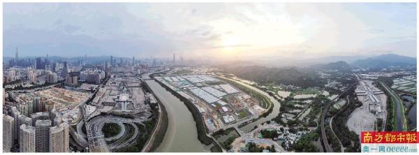 深圳,5月5日,晨曦中的中央援港应急医院和落马洲方舱设施。新华社