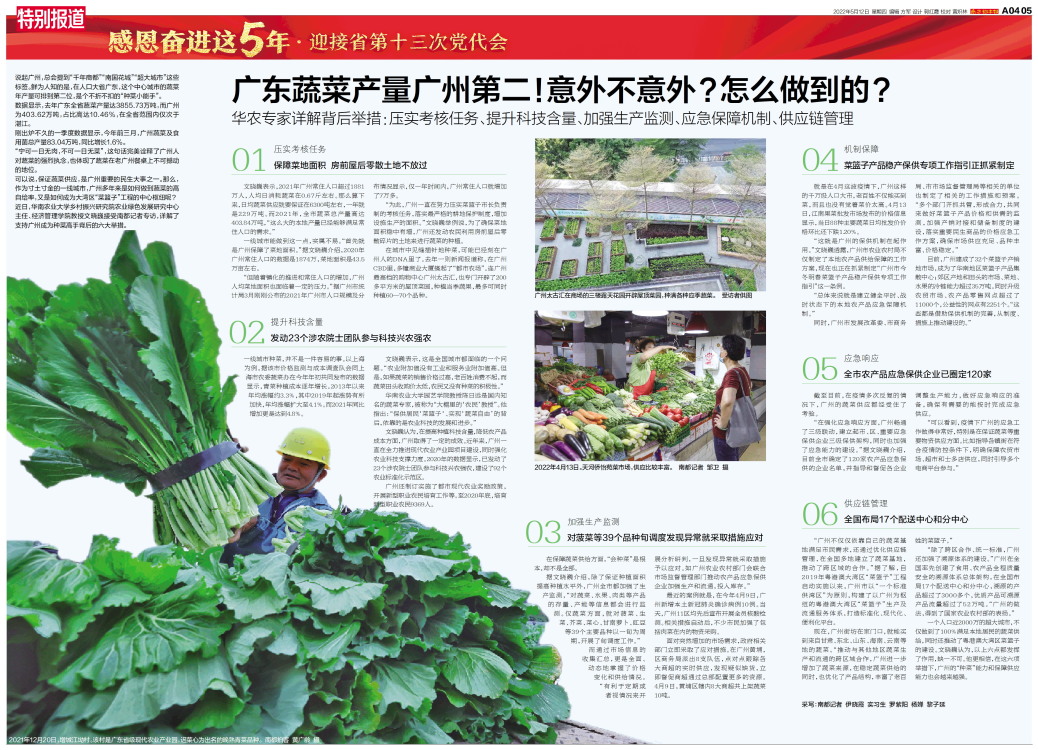 说起广州,总会提到“千年商都”“南国花城”“超大城市”这些标签。鲜为人知的是,在人口大省广东,这个中心城市的蔬菜年产量可排到第二位,是个不折不扣的“种菜小能手”。数据显示,去年广东全省蔬菜产量达3