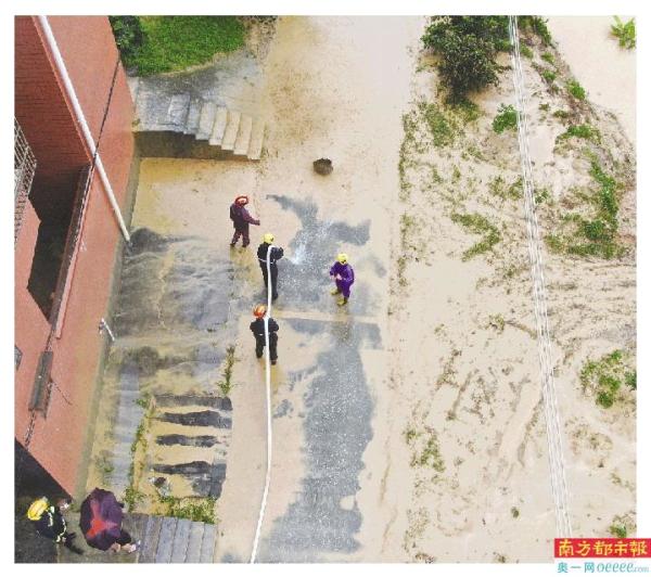 清远消防员在清淤。
