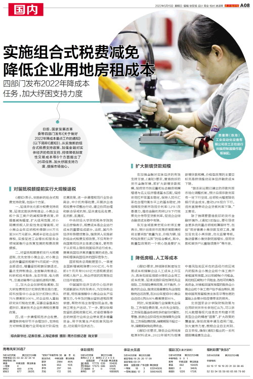 日前,国家发展改革委等四部门发布《关于做好2022年降成本重点工作的通知》(以下简称《通知》),从实施新的组合式税费支持政策、加强金融对实体经济的有效支持、持续降低制度性交易成本等8个方面提出了2