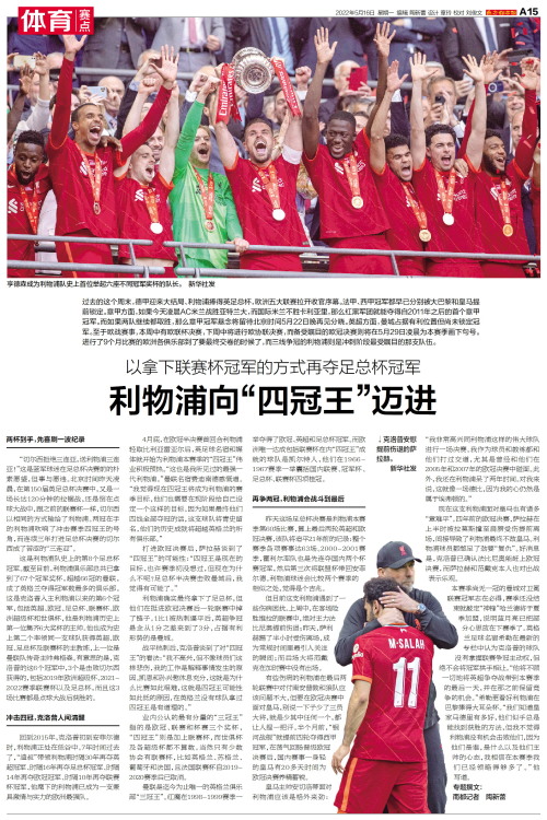 昨天这场足总杯决赛是利物浦本赛季第60场比赛,算上最后两轮英超和欧冠决赛,该队将追平21年前的纪录:整个赛季各项赛事达63场。2000-2001赛季,霍利尔率队也是先连夺国内两个杯赛冠军,然后第三次将联盟杯带回安菲尔德。利物浦球迷会比较两个赛季的相似之处,觉得是个吉兆。
