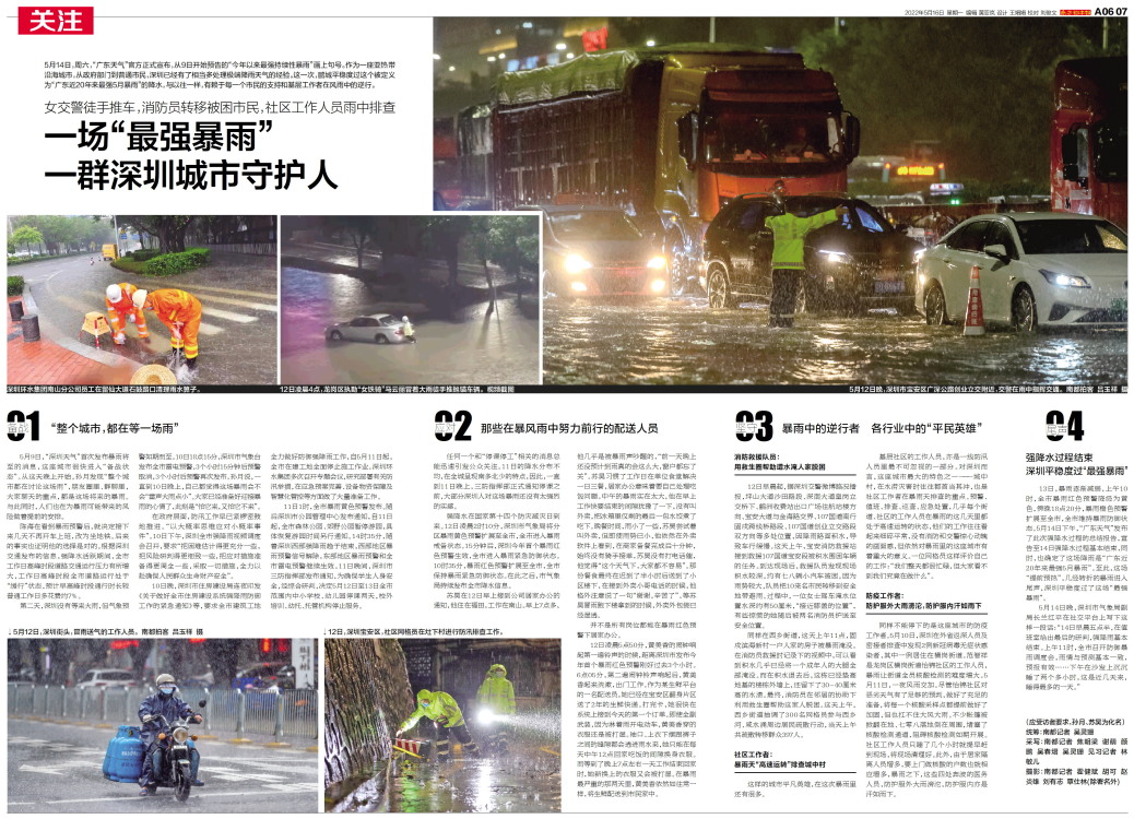 5月14日,周六,“广东天气”官方正式宣布,从9日开始预告的“今年以来最强持续性暴雨”画上句号。作为一座亚热带沿海城市,从政府部门到普通市民,深圳已经有了相当多处理极端降雨天气的经验。这一次,鹏城