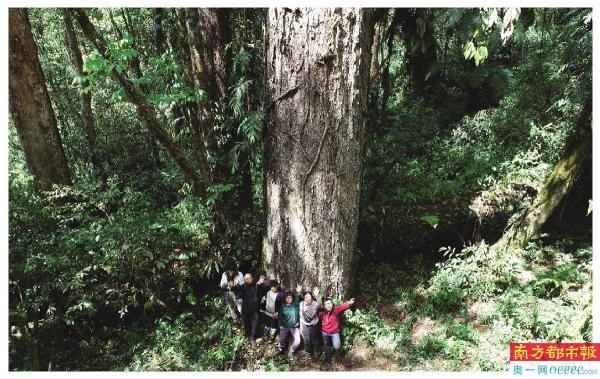 北京大学遥感所所长郭庆华告诉南都记者,为见这棵不丹松,带领团队穿越藤蔓、泥泞、陡坡等复杂路段,忍受突如其来的阵雨,历时三个多小时,终于来到它的脚下。在看到它的那一刻,“感觉一切都是值得的,就像夜登华山,最后登上山顶看到日出一样让人兴奋”。