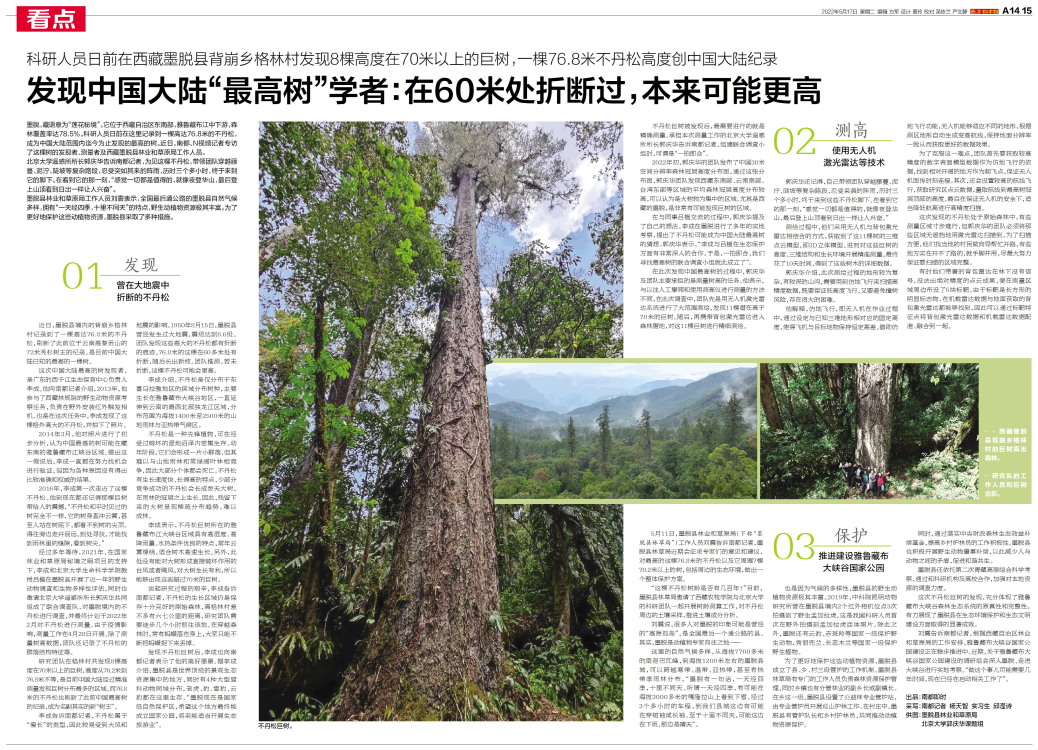 发现中国大陆“最高树”学者:在60米处折断过,本来可能更高