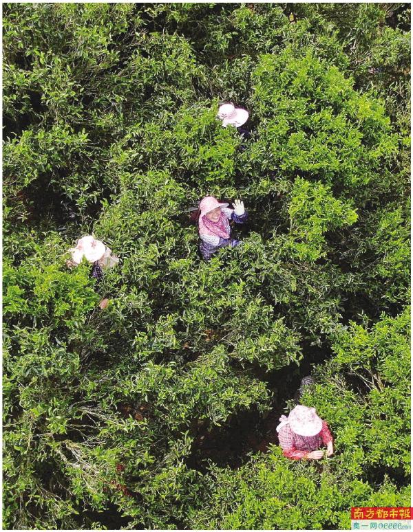 潮州市潮安区凤凰单丛茶省级现代农业产业园,茶农们在采茶。 新华社发