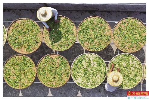 茶农们在晒茶。 南方日报记者 石磊 摄