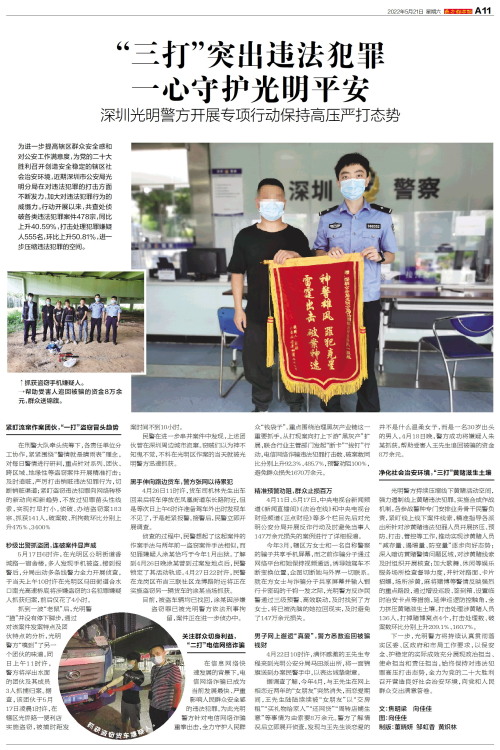 为进一步提高辖区群众安全感和对公安工作满意度,为党的二十大胜利召开创造安全稳定的辖区社会治安环境,近期深圳市公安局光明分局在对违法犯罪的打击方面不断发力,加大对违法犯罪行为的威慑力。行动开展以来,