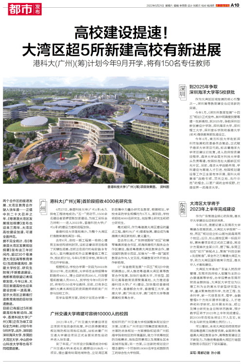 两个合作区的提速发展、大湾区教育合作驶入快车道……正值中共二十大召开之年,《粤港澳大湾区发展规划纲要》发布也迎来三周年,大湾区高校建设加速,可谓全面开花。 据不完全统计,在《粤港澳大湾区发展规划