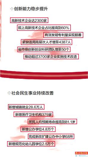坚定不移稳增长、调结构、促改革,经济逐步回到健康运行轨道,地区生产总值增速从一度全省排名靠后,稳步回升到全省前列。市场主体净增18.7万户,总数突破51万户,“四上”企业增至7293家,上市上板企业达83家。先进制造业增加值占规上工业比重提高到48.4%。投资结构明显改善,工业投资、基础设施投资占比分别提高到22.4%、32.7%。