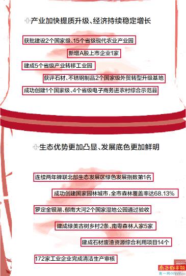 五年来,云浮市认真落实省委省政府“1+1+9”工作部署,以“打造粤北生态发展新高地、建设高质量发展的美丽云浮”为目标,紧扣“高质量党建引领保障高质量发展”和“抓经济发展就要抓财政”两条主线,聚焦园区经济、镇域经济、资源经济“三大抓手”,加快融湾进程,实现了“十三五”规划圆满收官和“十四五”良好开局。过去五年,云浮产业加快提质升级、经济持续稳定增长。2020年全市地区生产总值突破千亿大关,五年年均(下同)增长5.6%左右;一般公共预算收入年均增长5.14%;城乡居民人均可支配收入年均增长7.9%。农业经济持续增长,农林牧渔业总产值年均增长6.9%;获批建设2个国家级、15个省级现代农业产业园。