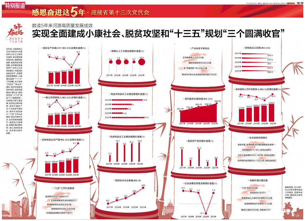 五年来,河源坚持以习近平新时代中国特色社会主义思想为指导,坚决贯彻落实党中央、国务院和省委、省政府的决策部署,在市委的坚强领导下,在市人大及其常委会、市政协的监督支持下,全面贯彻新发展理念,认真落