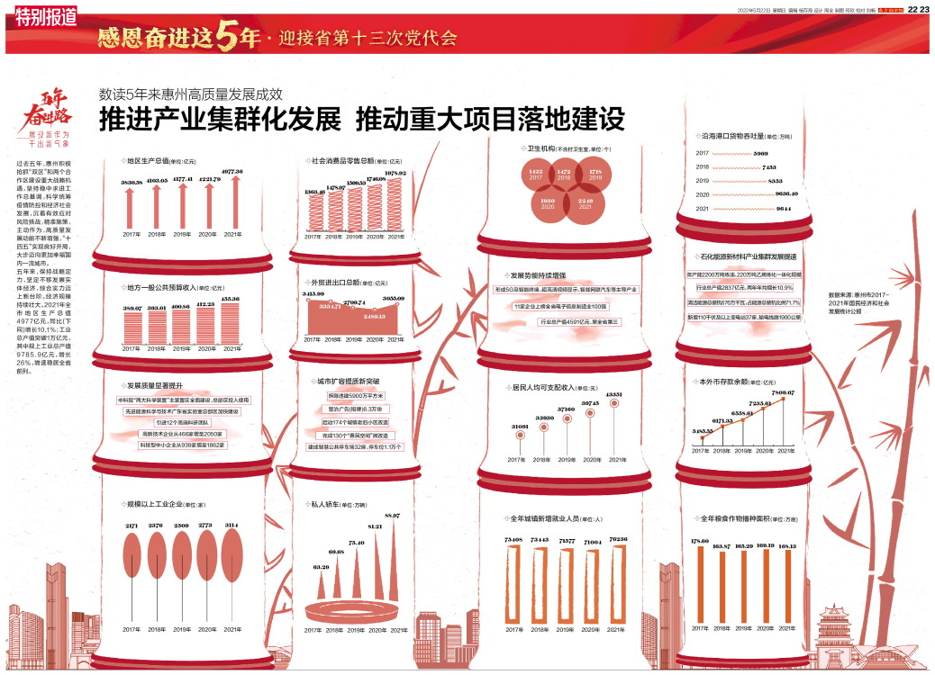 过去五年,惠州积极抢抓“双区”和两个合作区建设重大战略机遇,坚持稳中求进工作总基调,科学统筹疫情防控和经济