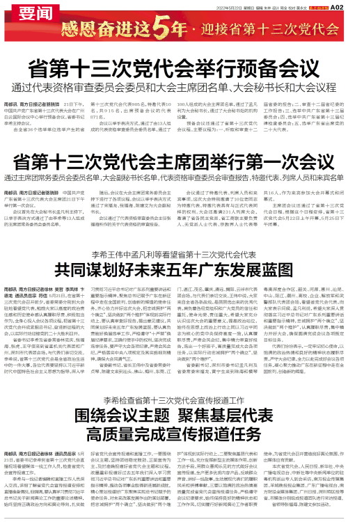 南都讯 南方日报记者徐林 吴哲 李凤祥 卞德龙 通讯员岳宗 符信 5月21日,在省第十三次党代会召开前夕,省委常委分别到大会驻地看望党代表,勉励大家以高度的政治责任感和历史使命感认真履职尽责、积极