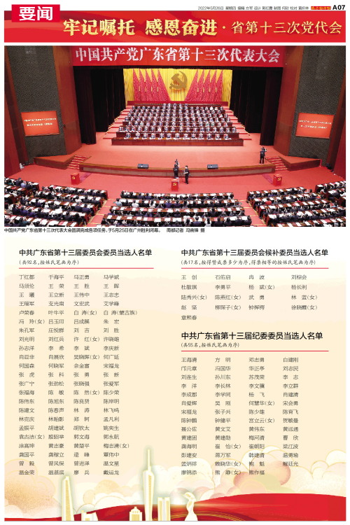 中国共产党广东省第十三次代表大会圆满完成各项任务,于5月25日在广州胜利闭幕。 南都记者 冯宙锋 摄