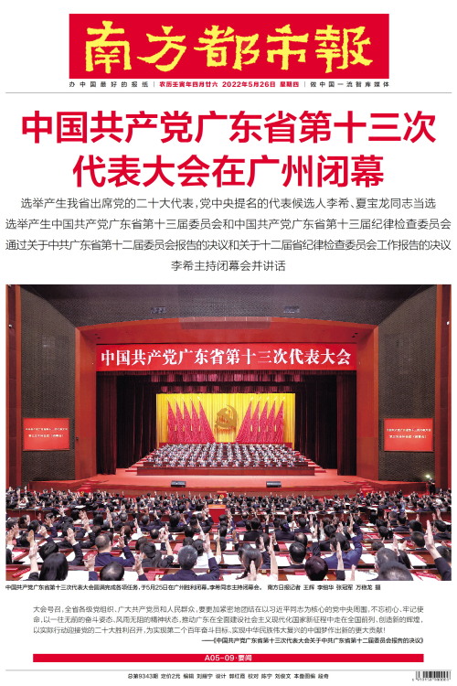 中国共产党广东省第十三次代表大会圆满完成各项任务,于5月25日在广州胜利闭幕。李希同志主持闭幕会。 南方日报记者 王辉 李细华 张冠军 万稳龙 摄 选举产生我省出席党的