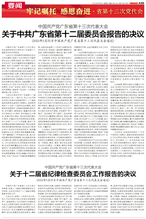 中国共产党广东省第十三次代表大会审查、批准十二届省纪律检查委员会工作报告。大会充分肯定了十二届省纪律检查委员会的工作。 大会认为,省第十二次党代会以来,在以习近平同志为核心的党中央坚强领导下,省