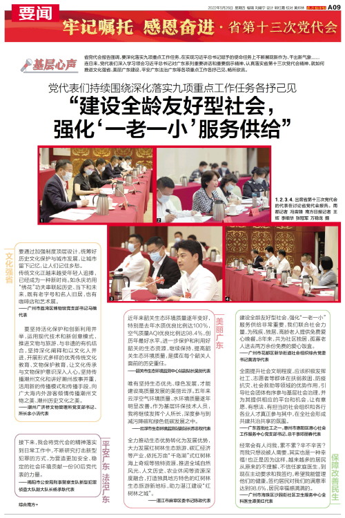 省党代会报告强调,要深化落实九项重点工作任务,在实现习近平总书记赋予的使命任务上不断展现新作为、干出新气象......连日来,党代表们深入学习领会习近平总书记对广东系列重要讲话和重要指示精神,认真