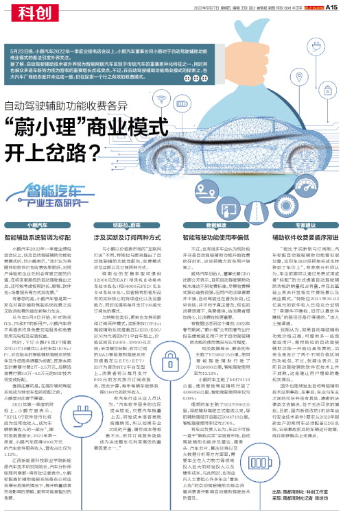 5月23日晚,小鹏汽车2022年一季度业绩电话会议上,小鹏汽车董事长何小鹏对于自动驾驶辅助功能商业模式的看法引发外界关注。