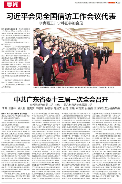 5月25日,党和国家领导人习近平、李克强、王沪宁、韩正等在北京人民大会堂会见第九次全国信访工作会议代表。 新华社发 新华社北京5月26日电 第九次全国信访工作会议25日