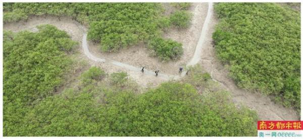 为保护红树林和水域生态,村里至今没有在鸡笼山沿岸的渡头村和湍流村中间修桥,六代摆渡人从木船撑到了玻璃钢船,外出就医、儿童上学全靠摆渡,劳建伟2015年接手了撑船的任务,2018年开始巡护,今年是他正式巡护红树林的第四个年头,因为身兼河口的摆渡人职责,劳建伟每天义务接送13个学生过渡上学,间歇时间围绕鸡笼山沿岸巡护,完全巡护一遍,大概15公里。