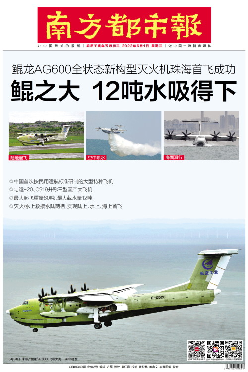 ◎中国首次按民用适航标准研制的大型特种飞机 ◎与运-20、C919并称三型国产大飞机 ◎最大起飞重量60吨,最大载水量12吨 ◎灭火/水上救援水陆两栖,实现陆上、水上、海上首飞