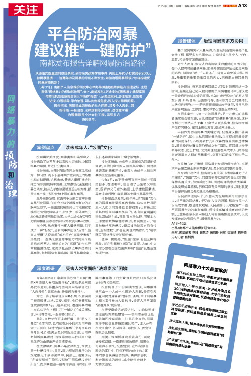 从德阳女医生遭网暴自杀案,到寻亲男孩刘学州事件,再到上海女子打赏骑手200元被网暴坠楼……这两年涉及网暴的悲剧不断发生。如何治理网暴顽疾?怎样构建反网暴屏障机制? 5月31日,南都个人信息保护研