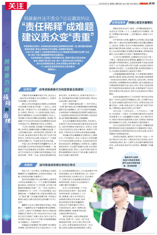 尽管事情过去很久,许多被访者仍能回忆起网暴发生的那一刻。面对铺天盖地的谩骂与指责,再怎么告诉自己不必理会,也很难不被动摇。 5月31日,南都个人信息保护研究中心以“网络暴力的预防与治理”为主题,