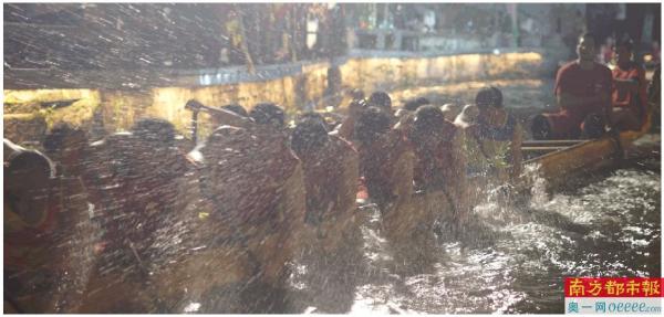 夜晚,佛山叠滘龙舟漂移训练进行得热火朝天。 南都记者 何惠文 摄