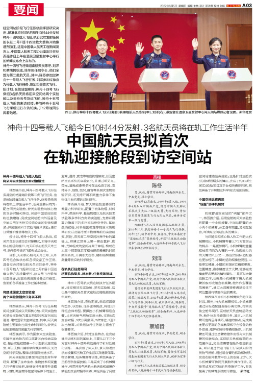 经空间站阶段飞行任务总指挥部研究决定,瞄准北京时间6月5日10时44分发射神舟十四号载人飞船。执行此次发射任务的长征二号F遥十四运载火箭将开始推进剂加注。这是中国载人航天工程新闻发言人、中国载人航