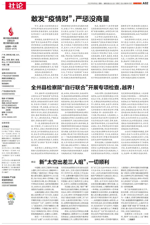 来论 中国载人航天工程再次传来重大喜讯,昨日10时44分,搭载神舟十四号载人飞船的长征二号F遥十四运载火箭在酒泉卫星发射中心点火发射,约577秒后,神舟十四号载人飞船与火箭成功分离,进入预定轨道