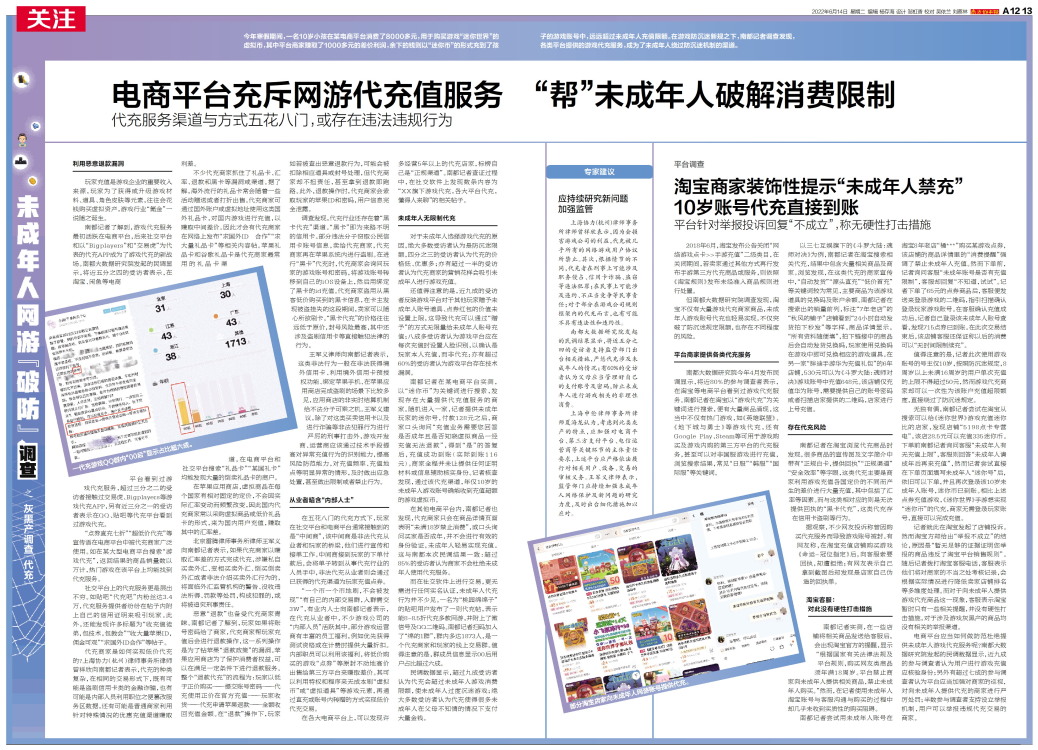 电商平台充斥网游代充值服务 “帮”未成年人破解消费限制