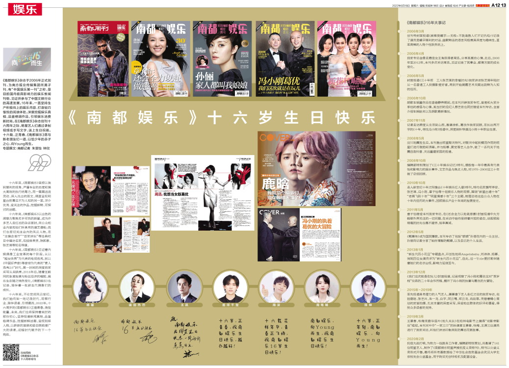 扫码预购《南都娱乐》杂志十六周年特刊 《南都娱乐》杂志于2006年正式