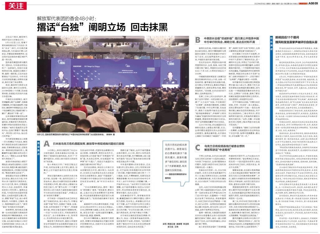 6月12日,国务委员兼国防部长魏凤和以“中国对地区秩序的愿景”为主题发表讲话。 李晓伟 摄 过去这个周末,解放军代表团开启48小时香会之行。 6月10日