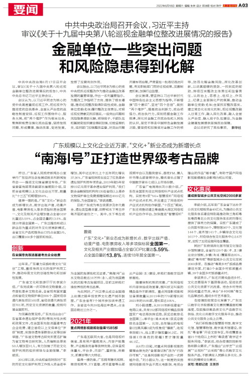 昨日,广东省人民政府新闻办公室举行广东经济社会发展成就系列新闻发布会——推进文化强省建设专场,广东省委宣传部常务副部长崔朝阳介绍,目前全省规模以上文化企业近万家,数量比“十三五”初期增加50%。