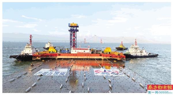 6月5日晚,E25管节在交通运输部广州打捞局拖航编队的拖带下扬帆起航,跨越珠江口最繁忙的伶仃航道和矾石水道,并于6日8时30分顺利抵达沉放安装水域,随即开展管节系泊、绞移等工作。
