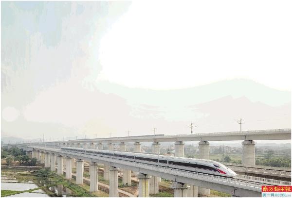 4月22日,G4022次列车行驶在黄(冈)黄(梅)高铁跨沪渝高速公路特大桥上。党的十八大以来,中央企业打造了高铁、核电等一批高质量产品。 新华社发