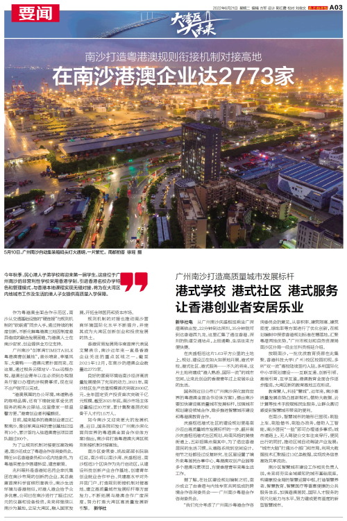 今年秋季,民心港人子弟学校将迎来第一届学生。这座位于广州南沙的非营利性学校采用香港学制,引进香港名校办学特色和管理模式,与香港本地课程实现无缝对接,将为在大湾区内地城市工作及生活的港人子女提供高质