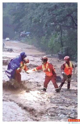 接到报警后,阳山县消防救援大队出动1辆消防车赶赴现场救援。但由于受到泥石流和山体滑坡影响,激流从山上冲下来,导致道路上积有很厚的淤泥。消防车无法正常通行。消防员立即下车徒步前进,徒步3公里抵达救援现场。