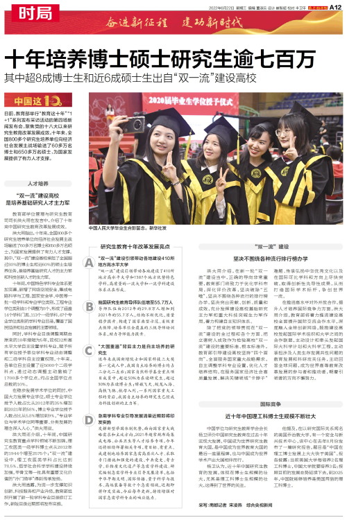 日前,教育部举行“教育这十年”“1+1”系列发布采访活动的第四场新闻发布会,聚焦党的十八大以来研究生教育改革发展成效。十年来,全国800多个研究生培养单位向经济社会发展主战场输送了60多万名博士和
