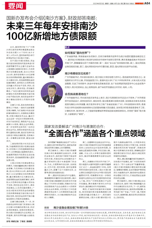 近日,国务院印发了《广州南沙深化面向世界的粤港澳全面合作总体方案》(以下简称《南沙方案》)。6月24日,国务院新闻办举行新闻发布会介绍《南沙方案》。 关于《南沙方案》在税收、资金等方面支持政策有