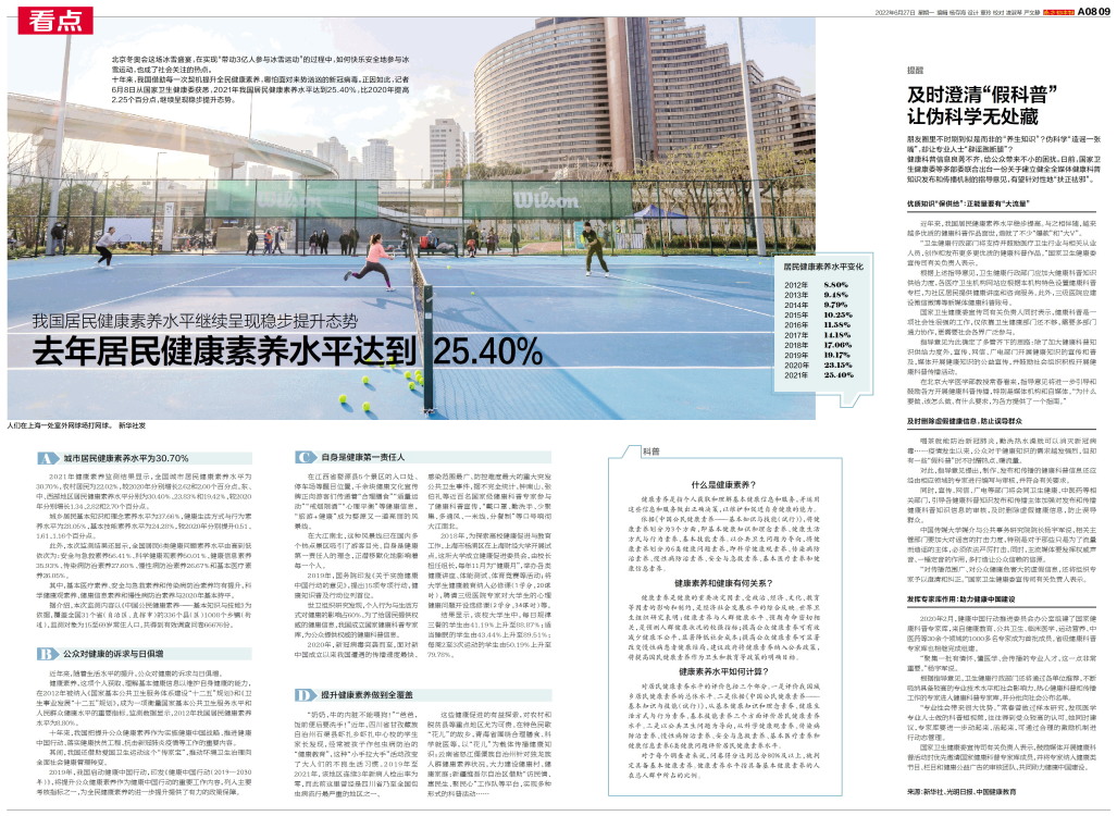 去年居民健康素养水平达到 25.40%