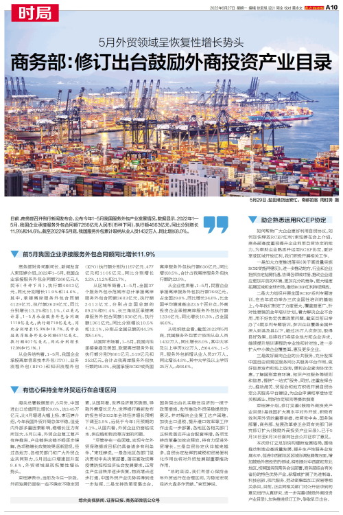 5月29日,盐田港货运繁忙。 南都拍客 周时勇 摄 日前,商务部召开例行新闻发布会,公布今年1-5月我国服务外包产业发展情况。数据显示,2022年1—5月,我国企业承接