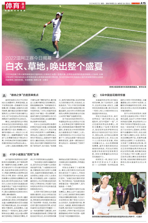2022年的第三项大满贯赛事温布尔登网球公开赛将于本周一全面开赛,世界排名前四的男选手有两人已缺席,女单卫冕冠军巴蒂的退役和众多明星的退出使得争冠前景扑朔迷离,而6名中国金花的亮相则让国内球迷期待