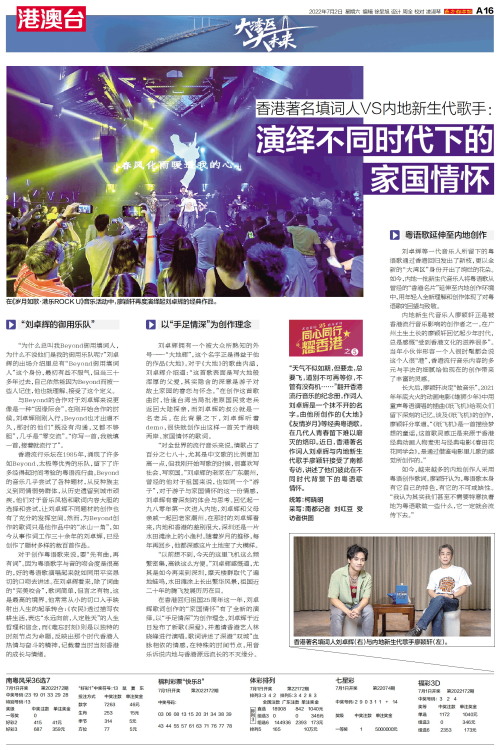 “天气不似如期,但要走,总要飞,道别不可再等你,不管有没有机……”翻开香港流行音乐的纪念册,作词人刘卓辉是一个抹不开的名字。由他所创作的《大地》《友情岁月》等经典粤语歌,在几代人青春留下难以磨灭的烙印。近日,香港著名作词人刘卓辉与内地新生代歌手廖颖轩接受了南都专访,讲述了他们彼此在不同时代背景下的粤语歌情怀。