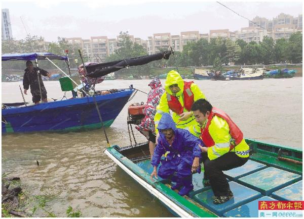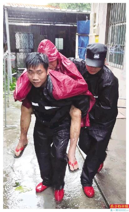 昨日上午,茂名市公安局滨海分局应急抢险警力及时出动,协助转移风险地区群众。 通讯员供图