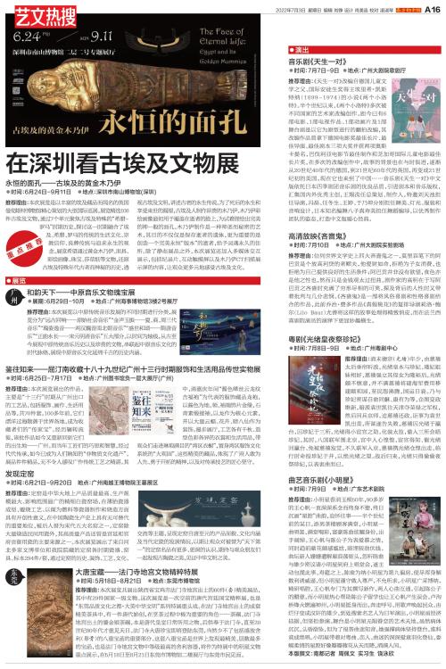 重点推荐 永恒的面孔——古埃及的黄金木乃伊 时间:6月24日—9月11日 地点:深圳市南山博物馆(深圳) 推荐理由:本次展览是以丰富的埃
